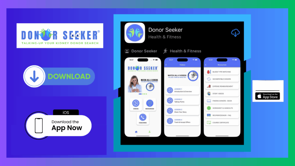 Do you feel uneasy talking about your hope for finding a living kidney donor? You’ve come to the right place! The Donor Seeker App provides 4 powerful video lessons to instantly help you boost your confidence and story sharing skills!