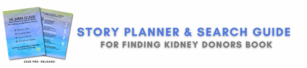Worry NOT about asking anyone to “GIVE UP” a kidney. The only thing you’ll be asking for is social media shares and word of mouth to expand your search!